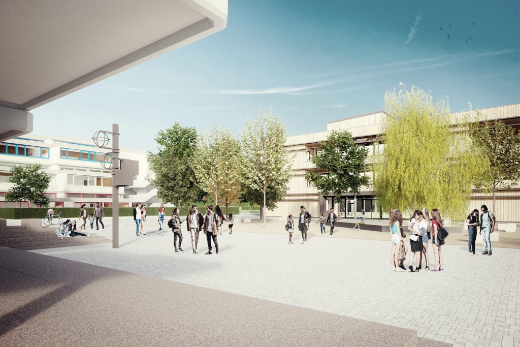 Ein paar nackte Zahlen: im dreigeschossigen Neubau (Keller, 1. und 2. OG) werden 10 Klassen- und sechs Differenzierungsräume entstehen. Ebenso wird es den neuen Ganztagsbereich beinhalten, eine dringend benötigte Lehrküche sowie einen Bereich für Lehrkräfte. 3500 Quadratmeter Bruttogrundfläche sollen entstehen, auf dem Dach wird eine Photovoltaik-Anlage für frischen Strom sorgen. Partner für das Mammut-Projekt sind „hautau.winterhalter:architekten“ sowie für den Schulhofbereich die „Büro AG Freiraum“ (beide Freiburg).